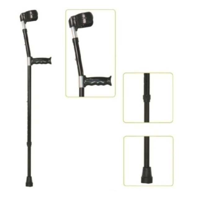 Structura metalică din aluminiu extrudat este ușoară, rezistentă și potrivită pentru utilizare zilnică. Mânerul ergonomic și suportul pentru antebraț sunt realizate din material plastic durabil, iar capătul inferior este prevăzut cu vârf de cauciuc antiderapant, asigurând aderență bună pe diverse suprafețe. Înălțimea este reglabilă (85–116 cm), ceea ce permite ajustarea adaptată staturii utilizatorului. Capacitatea de susținere ridicată îl face potrivit și pentru utilizatori cu greutate medie sau mare.