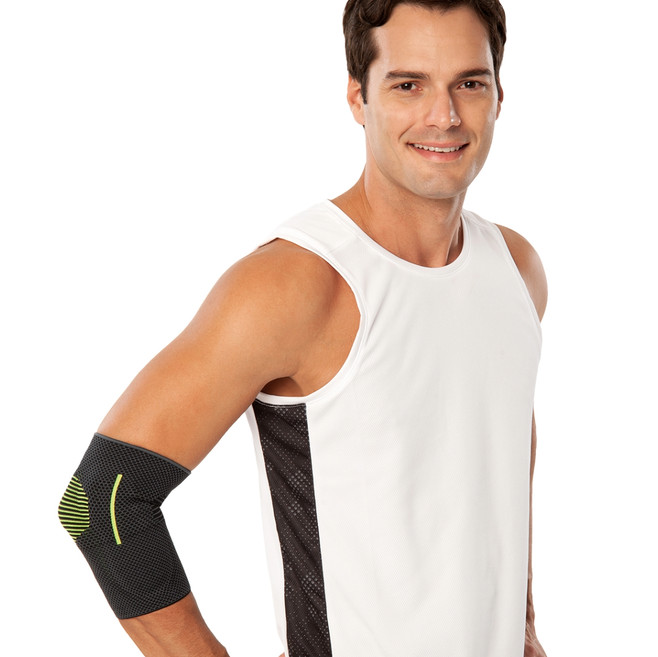 Orteza pentru cot este recomandată în tratamentul durerilor cronice (precum tendinita și bursita), dar și pentru prevenirea și susținerea articulației în timpul activităților sportive. Conține inserții din silicon pe ambele părți, care oferă compresie uniformă și susținere eficientă în zona cotului.Datorită tehnologiei speciale de țesere circulară, orteza este elastică, respirabilă și se mulează perfect pe articulație, oferind confort și libertate de mișcare.