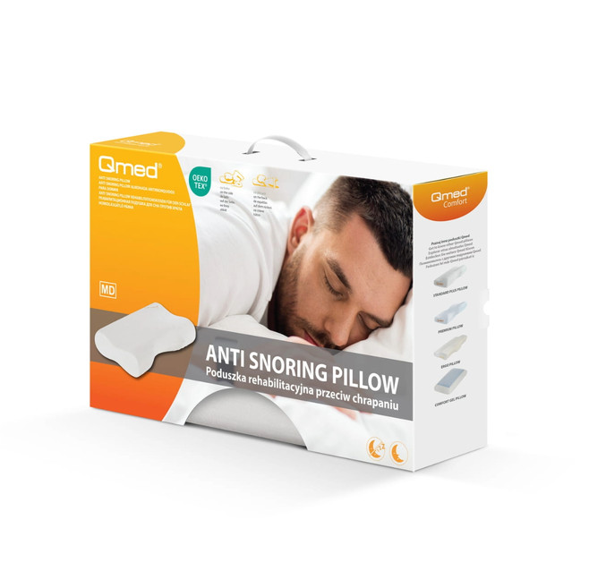 Qmed Anti Snoring Pillow este o pernă ortopedică special concepută pentru reducerea sforăitului, sprijinind capul și gâtul într-o poziție optimă care ajută la menținerea căilor respiratorii deschise și la facilitarea unei respirații liniștite în timpul somnului. Designul inovator cu zonă centrală mai subțire și margini laterale mai înalte asigură alinierea capului cu coloana vertebrală indiferent de poziția de somn (pe spate sau lateral).Confecționată din spumă cu memorie de densitate 55 kg/m³, perna se mulează pe forma corpului, reducând punctele de presiune și distribuind greutatea uniform. Suprafețele cu textură de masaj pe ambele părți îmbunătățesc circulația aerului, contribuind la confort termic pe durata nopții. Utilizarea regulată a pernei reduce sforăitul, îmbunătățește calitatea somnului și sprijină coloana cervicală, umerii și partea superioară a spatelui, contribuind la reducerea tensiunilor musculare și durerilor cervicale.Este un produs hipoalergenic, spuma cu memorie împiedicând dezvoltarea acarienilor, ideal pentru persoanele cu alergii.