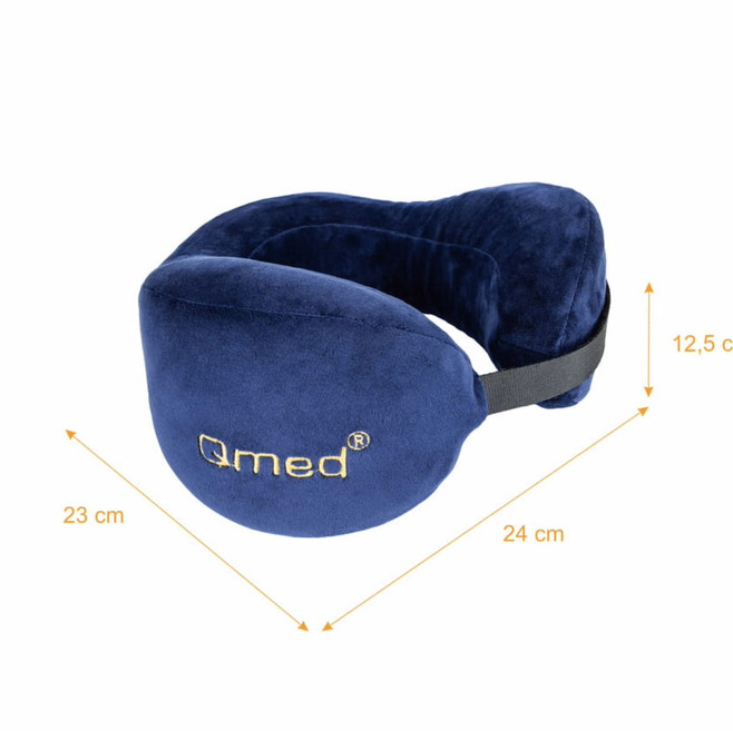 Pernă pentru călătorii Qmed este un produs ortopedic conceput pentru a oferi susținere ergonomică a gâtului și coloanei cervicale în timpul călătoriilor — cu mașina, avionul, trenul sau autobuzul. Designul său profilat asigură alinierea naturală a coloanei cervicale, reducând presiunea asupra vertebrelor, ligamentelor și țesuturilor moi, și ajutând la prevenirea durerilor și a tensiunilor musculare.