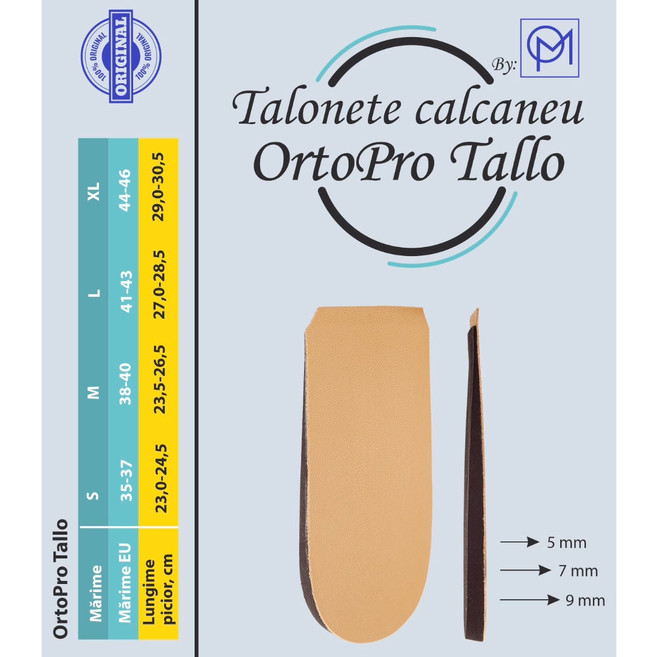Talonetele calcaneu OrtoPro Tallo sunt dispozitive medicale ortopedice concepute pentru amortizarea șocurilor asupra călcâiului și relaxarea tendonului lui Ahile, contribuind la reducerea durerilor și la îmbunătățirea confortului în timpul mersului. Structura adaptată oferă suport direcționat pentru afecțiunile călcâiului și pentru diferențele de lungime ale membrelor inferioare.