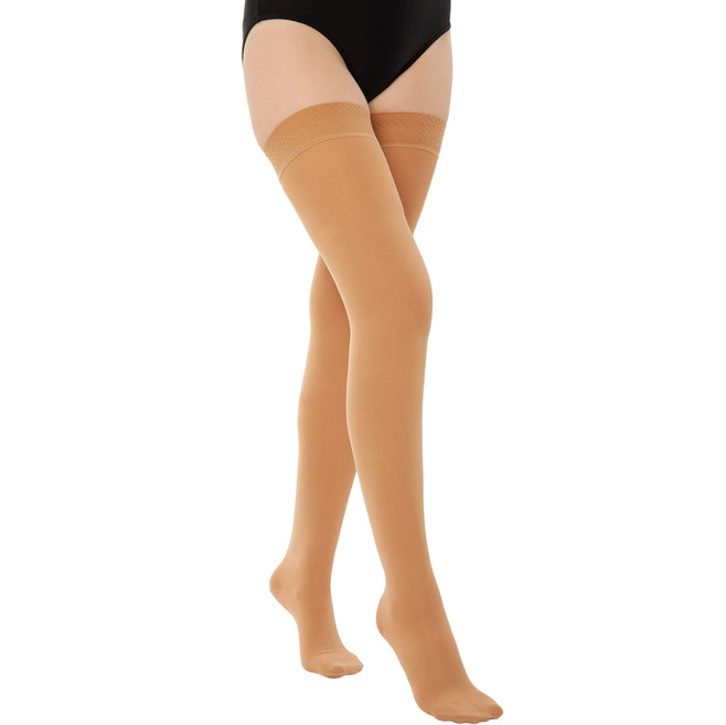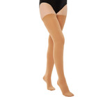 Компрессионные чулки до бедра с закрытым носком обеспечивают медицинскую градуированную компрессию, способствуют улучшению венозного кровообращения и снятию симптомов, таких как отёчность, усталость и варикозное расширение вен. Закрытый носок даёт полную защиту пальцам и делает изделие особенно удобным для повседневного или лечебного использования.