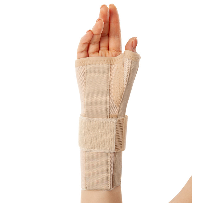 Ортез обеспечивает надежную фиксацию запястья и большого пальца, благодаря двум алюминиевым шинам, встроенным в область пальца и запястья. Рекомендуется при теносиновите, синдроме запястного канала, растяжениях или воспалениях. Выпускается отдельно для правой и левой руки для анатомического соответствия.
