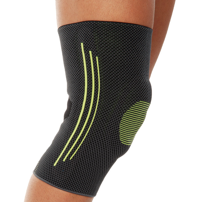 Ортез предназначен для поддержки коленного сустава при артрите, артрозе и лёгких травмах. Изготовлен из эластичного, мягкого и дышащего материала без швов, что обеспечивает максимальный комфорт и анатомическое прилегание. Силиконовое кольцо вокруг надколенника стабилизирует сустав, а две боковые гибкие вставки усиливают поддержку.