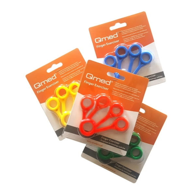 Эспандер для пальцев Qmed — это эргономичный тренажёр для укрепления пальцев, кисти и предплечья, а также для их реабилитации. Компактная форма позволяет использовать его в любое время — дома, на работе или в дороге. Модель выпускается в четырёх уровнях сопротивления, каждый из которых обозначен определённым цветом.
