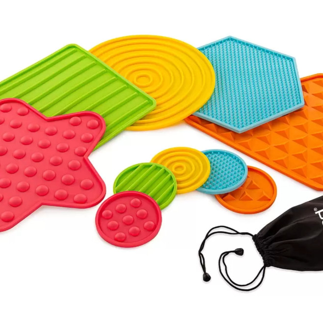 - Набор сенсорных элементов из мягкого силикона, с разными текстурированными поверхностями.