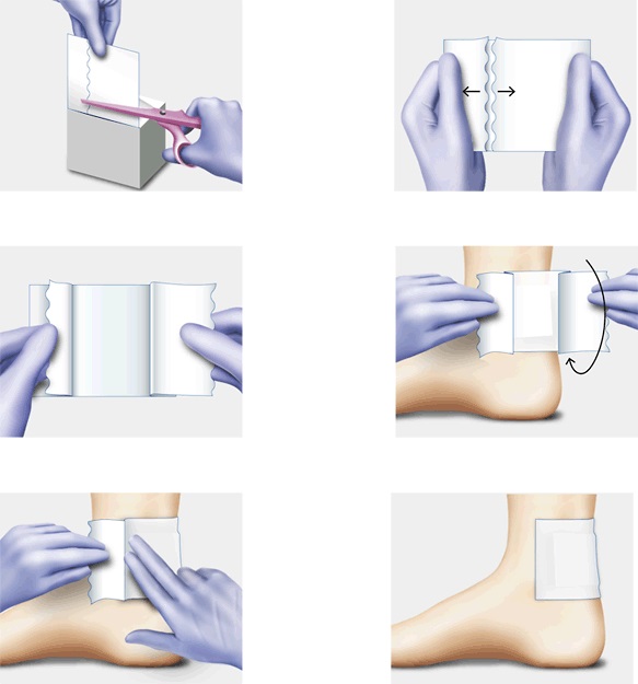 Pentru fixarea pansamentului prin acoperire totala, in special pe incheieturi sau parti unghiulare ale corpului, fara a limita miscarea.
