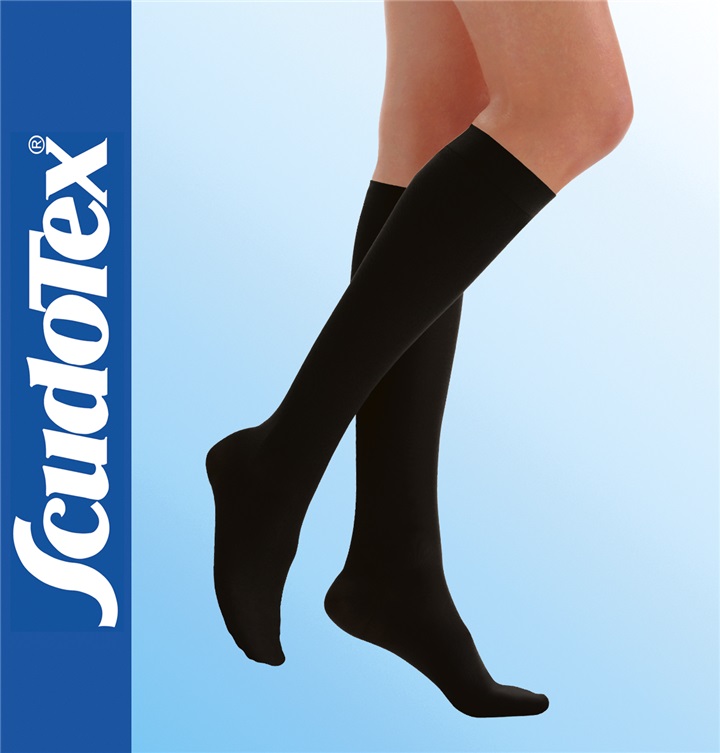 Ciorapii elastici Scudotex sunt fabricați din fibre elastice de înaltă calitate, care lasă pielea să respire. Țesătura este netedă, fiind extrem de plăcută la purtat și, totodată, asigură un confort maxim. Țesătura călcâiului este întărită pentru o durabilitate crescută, iar betelia și vârful ciorapului au la bază un tricotaj fin. Sunt eleganți si ușor opaci, fapt care permite camuflarea ușoarelor imperfecțiuni ale pielii. A se purta conform sfaturilor medicului.