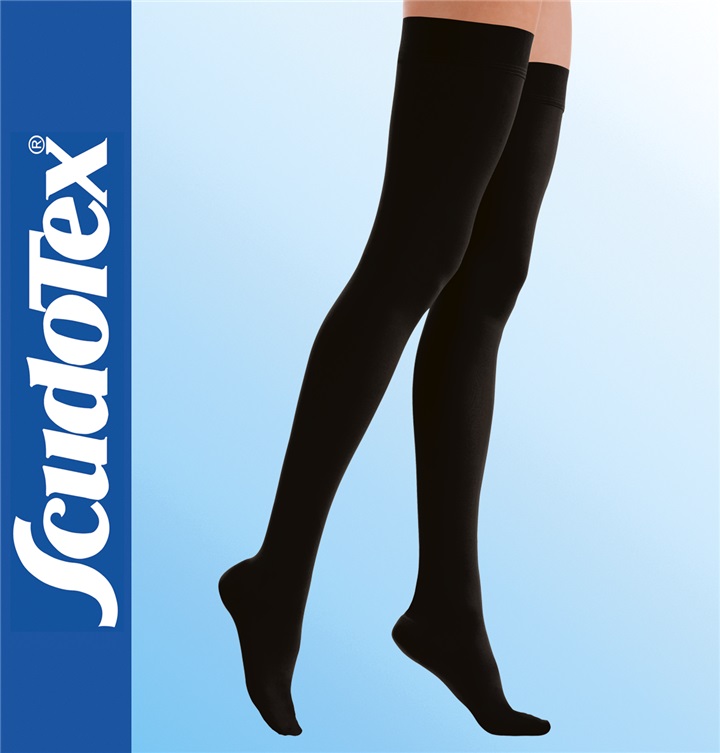 Ciorapii elastici Scudotex sunt fabricați din fibre elastice de înaltă calitate, care lasă pielea să respire. Țesătura este netedă, fiind extrem de plăcută la purtat și, totodată, asigură un confort maxim. Țesătura călcâiului este întărită pentru o durabilitate crescută, iar betelia și vârful ciorapului au la bază un tricotaj fin. Sunt eleganți si ușor opaci, fapt care permite camuflarea ușoarelor imperfecțiuni ale pielii. A se purta conform sfaturilor medicului.